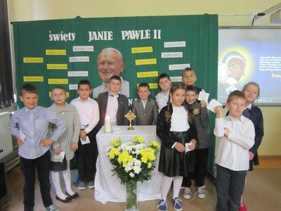 Goszczące w naszej parafii od 8 listopada relikwie św. Jana Pawła II, zawitały również do naszej szkoły.