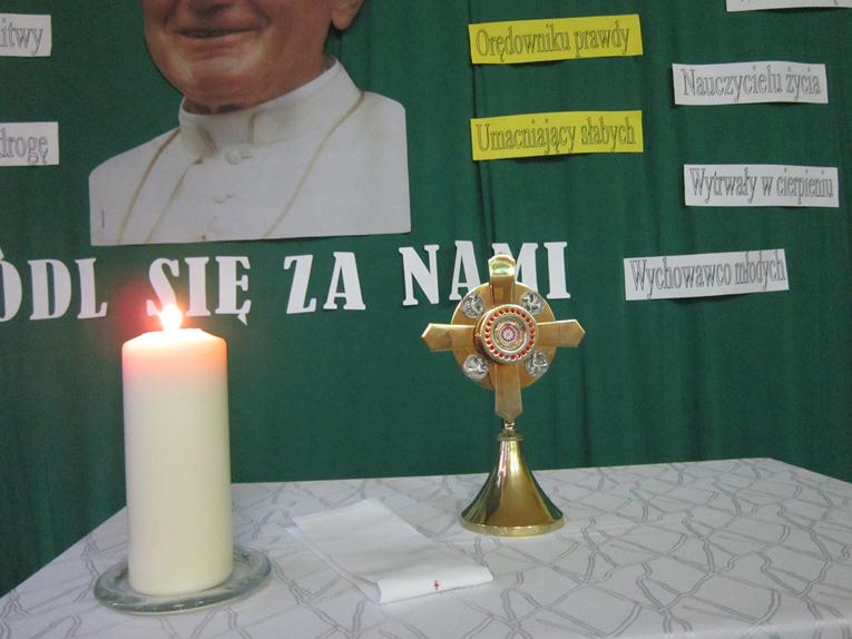 Relikwie św. Jana Pawła II w naszej szkole.