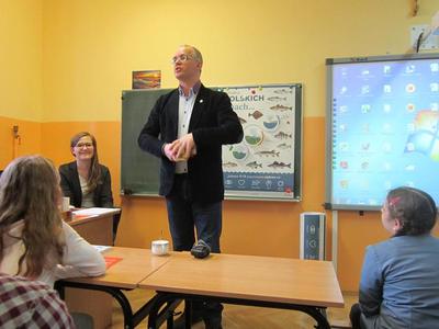W spotkaniu uczestniczyli wszyscy uczniowie kl. V i VI oraz uczniowie z klas II , III i IV, którzy wzięli udział w konkursie. W ramach spotkania odbyły się warsztaty poświęcone walorom prozdrowotnym jedzenia polskich ryb. Oprócz bardzo ciekawych, połączonych z konkursami, warsztatów, pan Zbigniew Szczepański, jak przystało na prawdziwe spotkanie autorskie czytał dzieciom wiersze z tomików o Panu Karpiu.