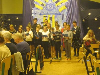 Na scenie zaprezentowali się uczniowie szkoły, którzy w pantomimicznej inscenizacji przedstawili historię zbawienia, począwszy od Raju i nieposłuszeństwa pierwszych rodziców, przez Zwiastowanie i bezgraniczne zaufanie Maryi Bogu, Boże Narodzenie w stajence, do zaproszenia każdego z nas ponownie do utraconego Edenu.