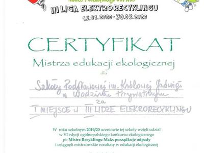 Zespół zwyciężył w rywalizacji z innymi szkołami w całej Polsce w III Lidze Elektrorecyklingu i wygrał ilością 3 801 914 punktów. Konkurs organizowany był przez Fundację Chlorofil i objęty był patronatami Kuratoriów Oświaty w: Kielcach, Łodzi, Rzeszowie, Gdańsku, Wrocławiu i w Gorzowie Wielkopolskim.