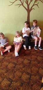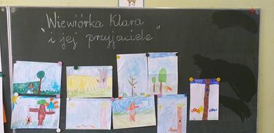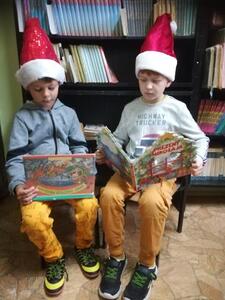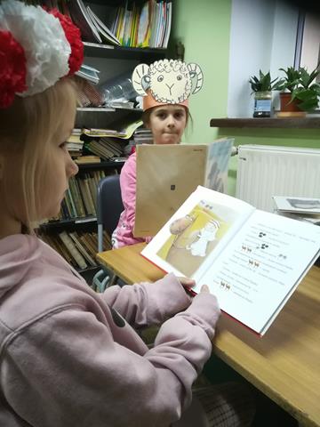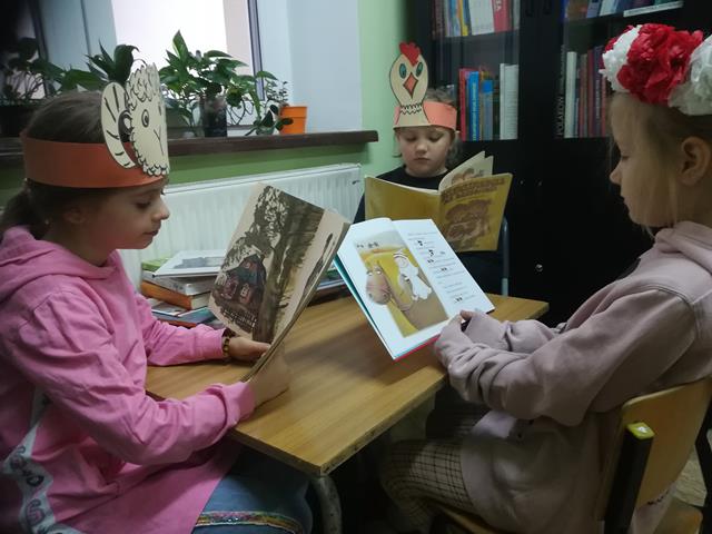 W tym dniu również uczniowie naszej szkoły wzięli udział w ogólnopolskiej akcji - Przerwa na czytanie. Najmłodszym uczniom z klas I – III wychowawczynie przygotowały kącik czytelniczy, w którym wysłuchali czytanej przez kolegów bądź nauczycieli opowieści pt: „Wiewiórka Klara i przyjaciele”. Wykonali również prace plastyczne oraz wzięli udział w pogadance o zaletach czytania a nauczyciel bibliotekarz przeprowadził konkurs ze znajomości przeczytanego tekstu. Biblioteka szkolna w ramach akcji zaprosiła najmłodszych czytelników do czytania swoich ulubionych książek. Każdy czytelnik zadbał o jakiś element wyglądu, który kojarzył się z książką lub z książkowych bohaterem.
