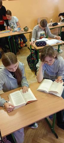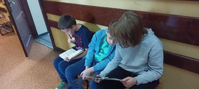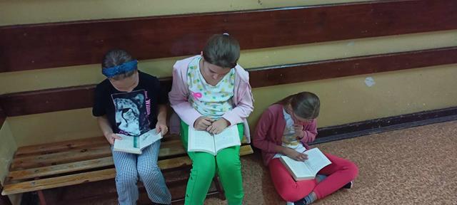 Starsi uczniowie czytali przyniesione przez siebie lub wypożyczone z biblioteki szkolnej książki podczas wszystkich przerw śródlekcyjnych. Miejsce do czytania wybierali sami. Czytano więc w salach lekcyjnych, na szkolnych korytarzach, na schodach czy w bibliotece. Czytała cała społeczność naszej szkoły. Czytaliśmy to co lubimy, bo to sprawia nam przyjemność.