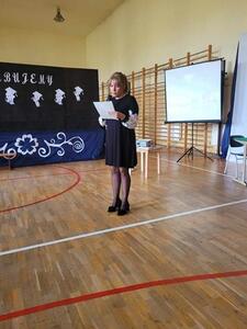 Po tej części głos zabrała pani Dyrektor, która skierowała do grona pedagogicznego oraz pracowników administracji i obsługi wiele ciepłych słów, życząc dużo sił do podejmowania wyzwań jakie czekają ich w pracy z dziećmi i młodzieżą .