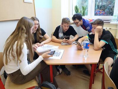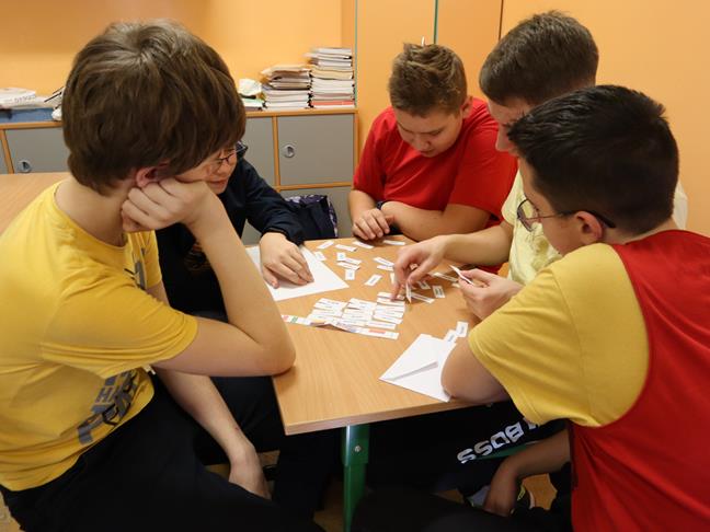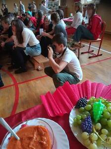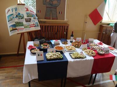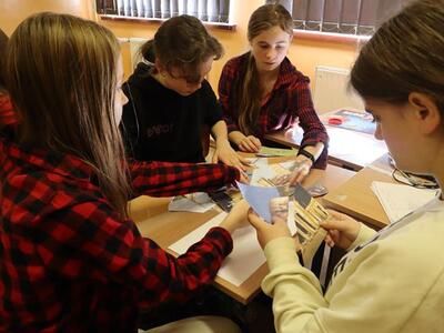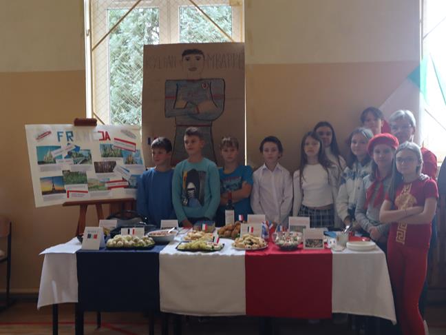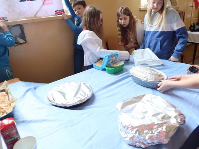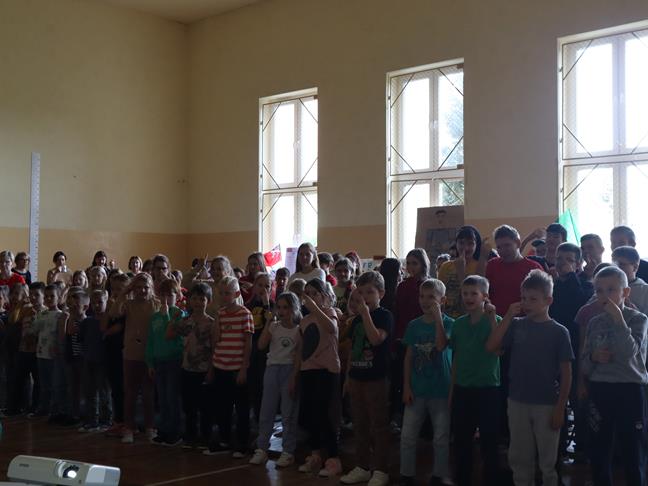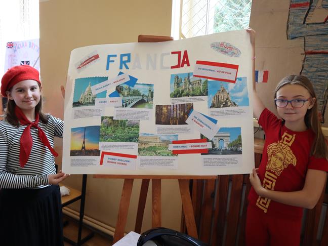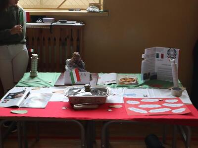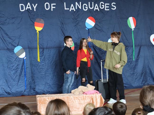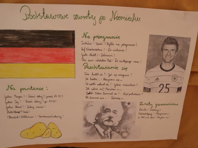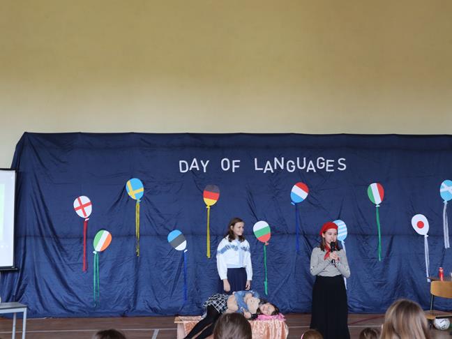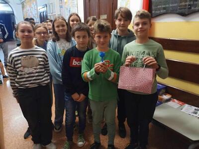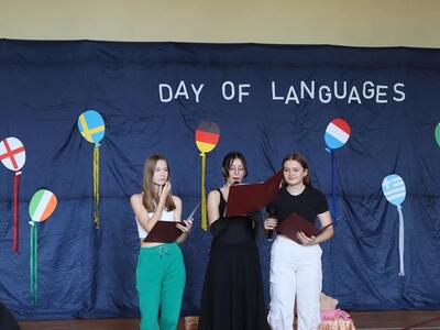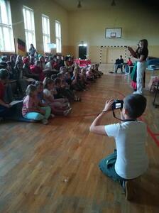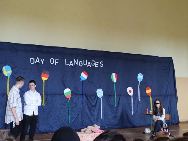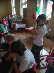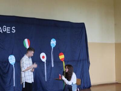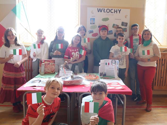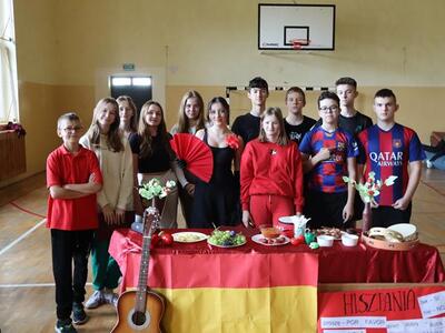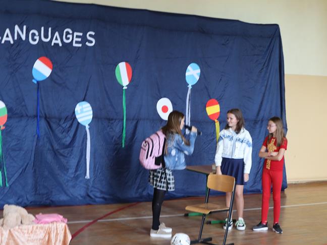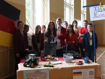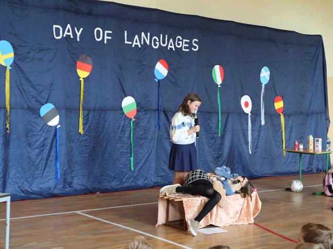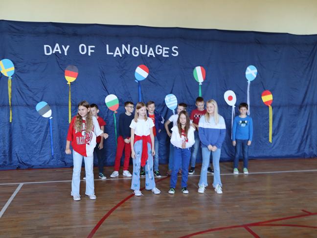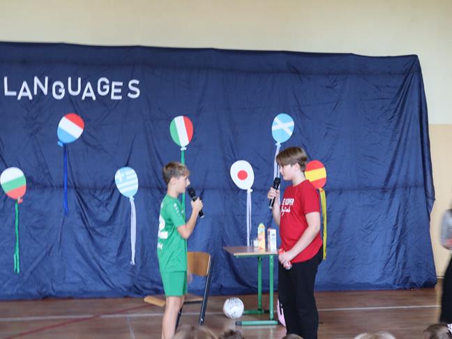 W dniu 30 października 2023 r. obchodziliśmy w naszej szkole Dzień Języków Obcych. Uczniowie klas IV-VIII dzięki pomocy rodziców i wychowawców przygotowali piosenki w różnych językach oraz stoiska z potrawami i symbolami z różnych zakątków świata, które podlegały ocenie Jury. Nie zabrakło aktywnych zabaw edukacyjnych oraz zadań w formie odszyfrowywania kodów QR czy układania puzzli, dzięki którym można było również nabyć pewne umiejętności językowe. Uczniowie klasy V zdobyli najwięcej punktów za przygotowane stoisko i zostali nagrodzeni "dniem bez pytania, kartkówek i sprawdzianów", szóstkami z języka angielskiego oraz nagrodami pozyskanymi z Ambasady Niemiec. Klasa V otrzymała również puchar wydrukowany na drukarce 3D z tej okazji. Tego dnia nasza szkoła stała się miejscem, w którym można było poczuć kulturę innych państw. Przebieg imprezy dokumentowany był z wykorzystaniem aparatu z programu Laboratoria Przyszłości. Dziękujemy wszystkim za zaangażowanie i pomysłowość.