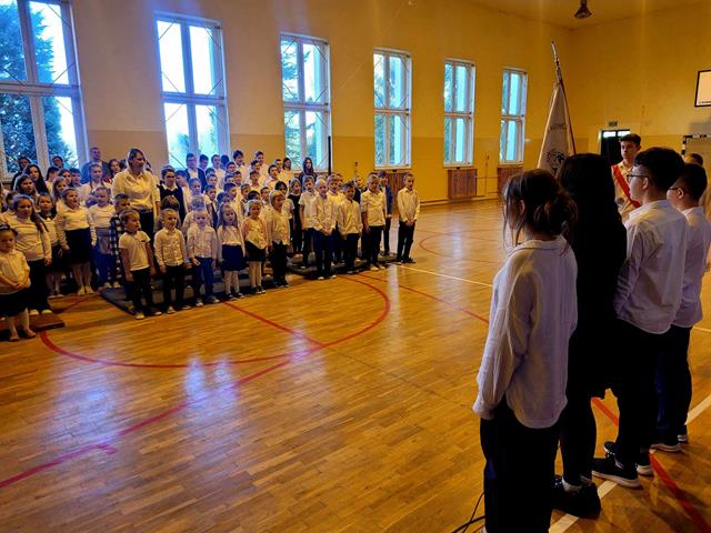 Narodowe Święto Niepodległości obchodzone 11 listopada to ważne i piękne święto – święto każdego Polaka. W trosce o pamięć dla tego historycznego wydarzenia, kiedy Polska po 123 latach niewoli znów pojawiła się na mapie Europy i stała się wolnym państwem, w naszej szkole przygotowano uroczystą akademię. W dniu 9 listopada zgromadziliśmy się w sali gimnastycznej, by wspólnie świętować tę historyczną datę. Było pięknie, wzruszająco i bardzo uroczyście.