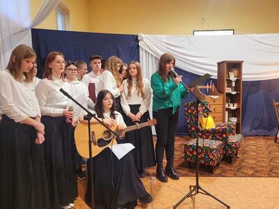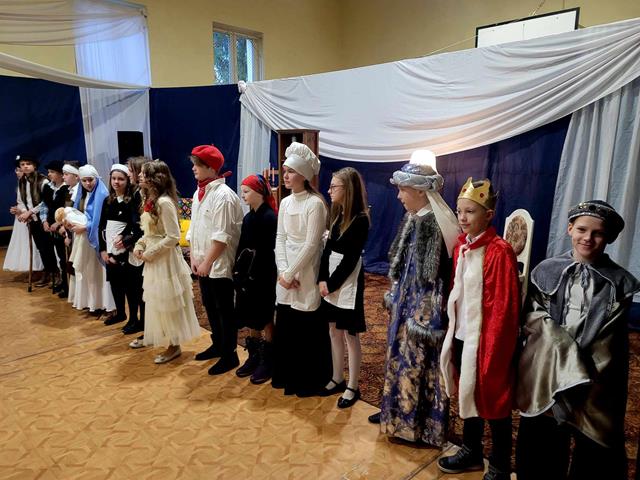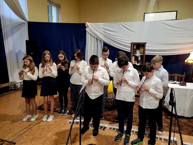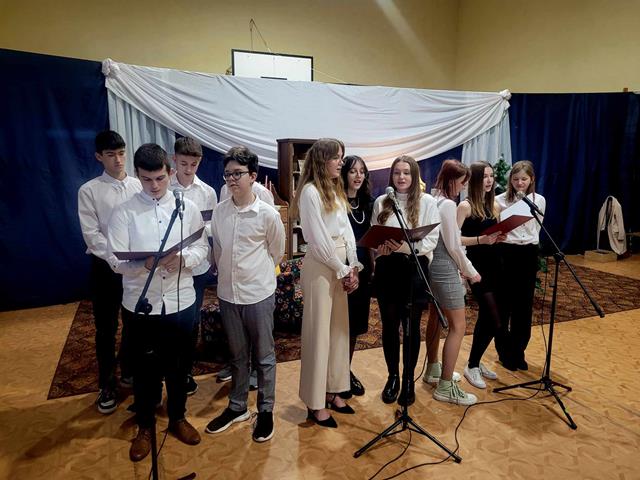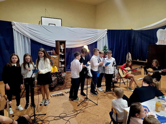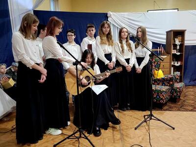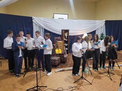 Kolędy i pastorałki - chór szkolny z klasy 8 oraz przedstawiciele wszystkich klas.
