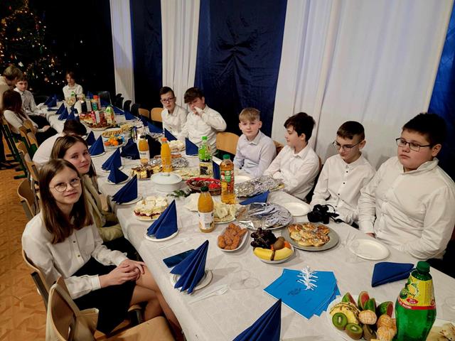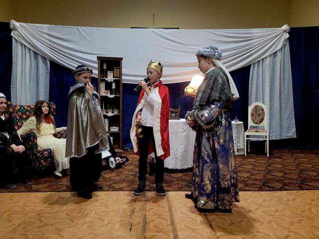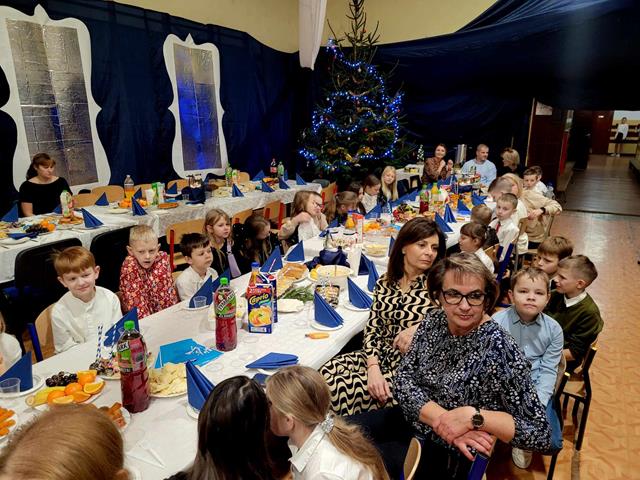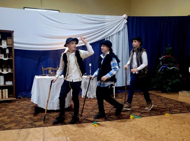 To tytuł tegorocznego przedstawienia jasełkowego w Szkole Podstawowej im. Królowej Jadwigi w Wodzinie Prywatnym, które zgromadziło 21 grudnia całą społeczność szkolną, zaproszonych gości i przybyłych rodziców. Na tę specjalną uroczystość przypominającą nam Narodzenie Jezusa Chrystusa przybył burmistrz Miasta i Gminy Tuszyn pan Witold Małecki, ksiądz proboszcz Mariusz Staszczyk, pani Monika Kosacka Dyrektor COAFSiP w Tuszynie, Aleksandra Banaszkiewicz główna księgowa COAFSiP, Lidia Zielińska - kierownik MOPS w Tuszynie, Karolina Przybyłek-Lasoń Dyrektor Dziennego Domu Seniora Wigor, pan Wojciech Skibiński specjalista ds spraw promocji gminy Tuszyn, przewodnicząca Rady Rodziców - pani Renata Jagodzińska oraz emerytowani nauczyciele naszej szkoły. Scenariusz bożonarodzeniowego spotkania opracowała pani katechetka, Małgorzata Gosławska. Oprawę muzyczną przygotowała pani Kinga Sporysiak, a dekoracje wykonali wszyscy nauczyciele szkoły, pod okiem pani Beaty Kudaj. Uczniowie klas IV, V i VI na chwilę zamienili się w profesjonalnych aktorów. W tym roku przedstawienie okraszone było jak zwykle kolędami i pastorałkami. Były też sceny humorystyczne, ale także zmuszające do chwili zadumy nad przemianą, jakiej może doświadczyć każdy człowiek podczas Bożego Narodzenia. Wszystko przebiegało zgodnie z planem i jak zawsze aktorzy wypadli wspaniale. Po występie życzenia zebranym złożyła pani dyrektor szkoły, pan burmistrz oraz ksiądz proboszcz i pani Monika Kosacka. Na zakończenie Pani dyrektor podziękowała wszystkim za stworzenie świątecznej atmosfery i zaprosiła do podzielenia się opłatkiem, a później do wspólnej wigilii, która przygotowana była na sali gimnastycznej. W miłym, świątecznym nastroju uczniowie, nauczyciele, pracownicy szkoły i zaproszeni goście oraz rodzice spędzili wspólnie wigilię szkolną.
