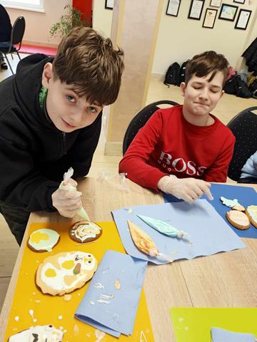 W dniu 12 marca nasi wolontariusze z klasy VI i VII pod opieką pani Małgorzaty Tomaszewskiej i pani Ewy Błaszczyk, w ramach projektu „Podaj dobro dalej”, odwiedzili Zakład Aktywności Zawodowej w Tuszynie. Wizyta ta była dla uczniów tym bardziej szczególna, gdyż mieli możliwość poznania tam osób pracujących z różnymi niepełnosprawnościami. Pracownicy ci spełniają się w roli zawodowej na stanowisku kelnerskim lub też pomocy kuchennej w restauracji Kulinarne Mosty. Poza aktywizacją zawodową osoby pracujące mają również zapewnioną rehabilitację społeczną i zdrowotną w miejscu pracy. Nasi młodzi wolontariusze zostali bardzo miło i serdecznie powitani w tym szczególnym miejscu przez kierownictwo tej instytucji a następnie wzięli udział w warsztatach lukrowania pierników, jak również poznali uroki pracy w Restauracji Kulinarne Mosty Zakładu Aktywności Zawodowej. Atmosfera w tym miejscu jest niesamowita. Ludzie wzajemnie sobie pomagają, pokonują przeciwności losu i własne granice niepełnosprawności. Miło było patrzeć na uśmiechnięte twarze podopiecznych podczas wspólnych warsztatów z wolontariuszami. Czas jednak bardzo szybko minął i wkrótce trzeba było się pożegnać. Była to dla nas wszystkich nieoceniona lekcja, z której wynieśliśmy wiele wartości życiowych. Dziękujemy za ugoszczenie nas w Restauracji Kulinarne Mosty Zakładu Aktywności Zawodowej. Dziękujemy za życzliwość, uśmiech, poświęcony czas i przekazaną nam wiedzę.