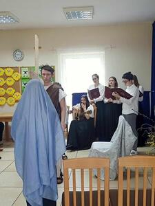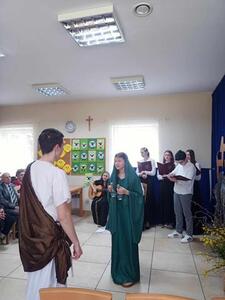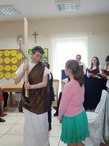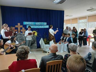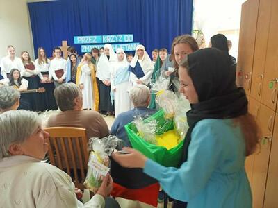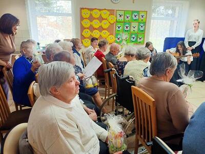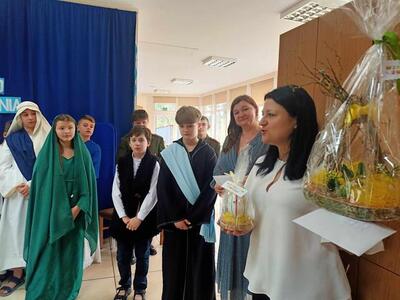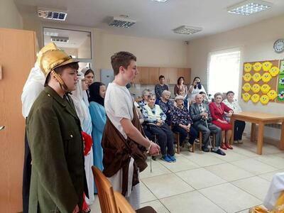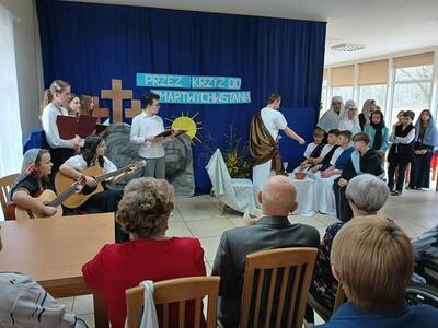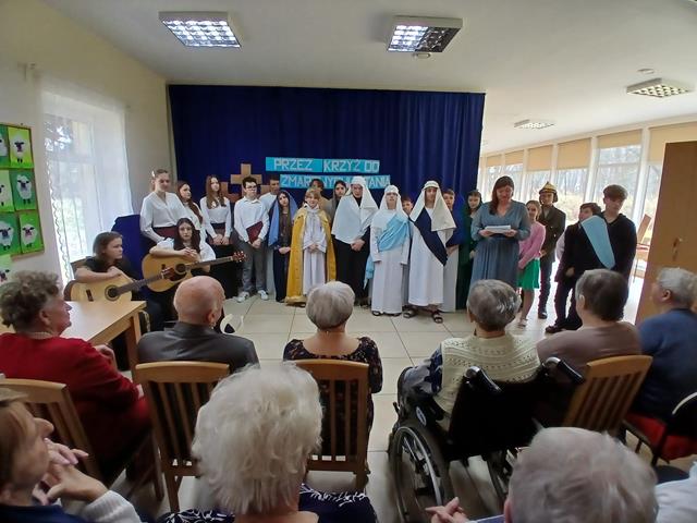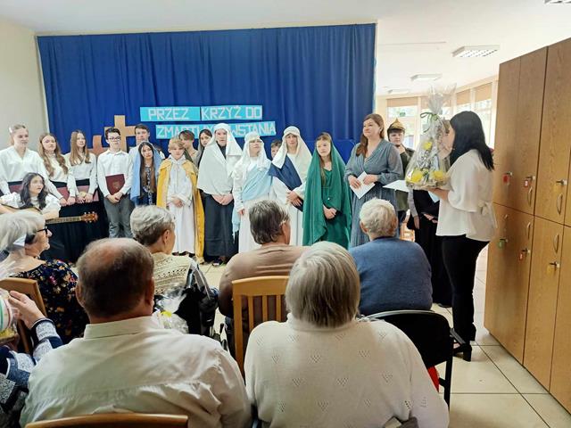 W dniu 25 marca uczniowie naszej szkoły pod opieką pani Małgorzaty Gosławskiej i pani Małgorzaty Tomaszewskiej odwiedzili podopiecznych Dziennego Domu Senior – Wigor w Tuszynie. Uczniowie zaprezentowali podopiecznym przedstawienie o tematyce odnoszącej się do wydarzeń Wielkiego Tygodnia wraz z montażem muzycznym wykonanym przez uczennice z klasy VIII. Po przedstawieniu, obecna z nami, nasza pani dyrektor Renata Wojtyla złożyła pensjonariuszom świąteczne życzenia. Wraz z życzeniami zdrowych i pogodnych świąt pełnych wiary, nadziei i miłości oraz radosnego, wiosennego nastroju nasi uczniowie obdarowali pensjonariuszy wielkanocnymi upominkami oraz czekoladowymi jajeczkami. Nie zabrakło też chwil wzruszeń i podziękowań ze strony podopiecznych i dyrekcji Domu Senior – Wigor.