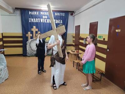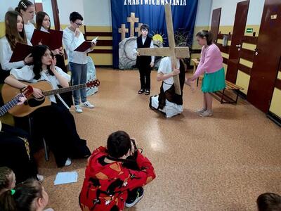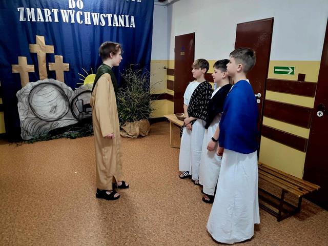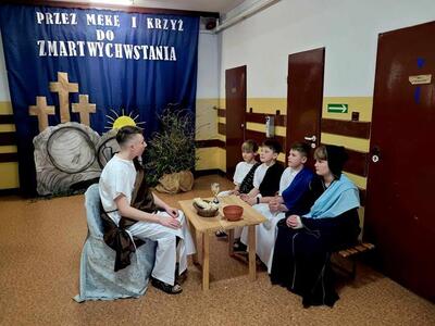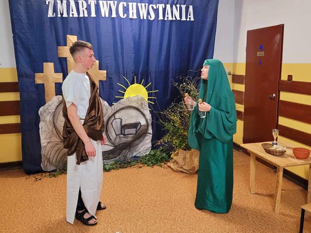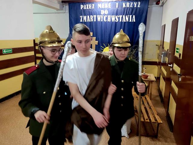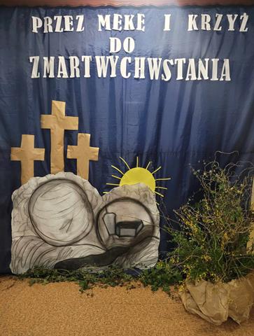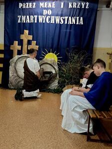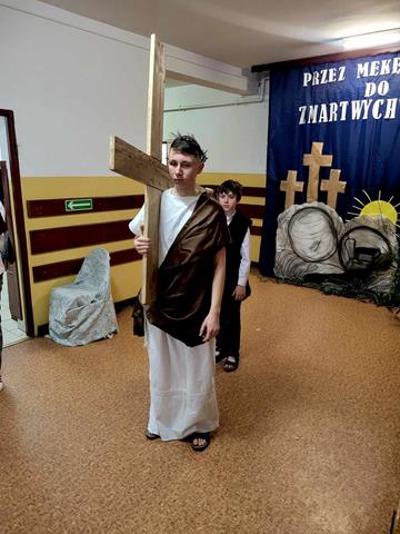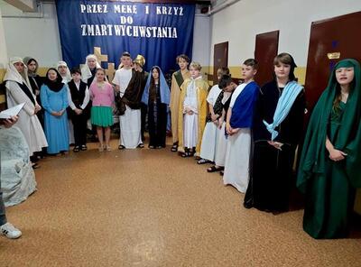 Dnia 27 marca 2024 roku, młodzież naszej szkoły wystawiła wzruszające Misterium Paschalne, opowiadające o męce, śmierci i Zmartwychwstaniu Jezusa Chrystusa pt. "Przez mękę i krzyż do ZMARTWYCHWSTANIA".
