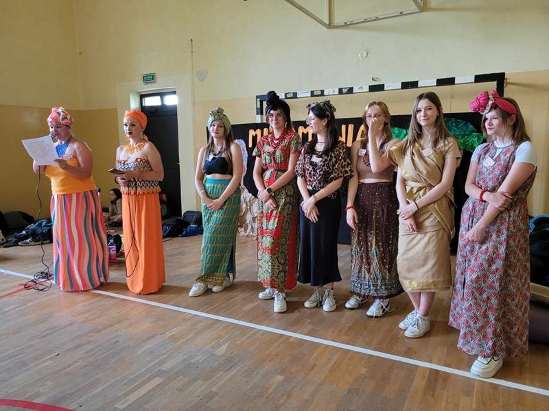Ta inicjatywa wymaga od nas dużego zaangażowania. Dziękuję wszystkim uczennicom klasy 8, Pani Dyrektor - Renacie Wojtyle, nauczycielom - p. Iwonie Koseckiej, p. Beacie Kudaj, p. Iwonie Rytych, p. Gabrieli Krzymowskiej, p. Ewie Błaszczyk i p. Marcie Goszczyńskiej, absolwentom naszej szkoły, którzy włączyli się w realizację zadań gry terenowej. Bardzo dziękuję mieszkańcowi naszej wsi Afrykańczykowi p. Steve'owi Ndoudoumou za wypożyczenie pamiątek rodzinnych - strojów, naszyjników, lalki, masek afrykańskich.