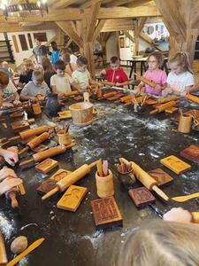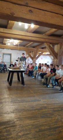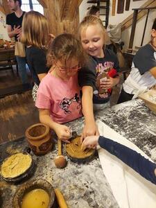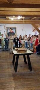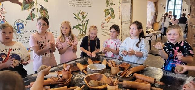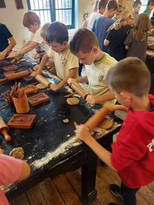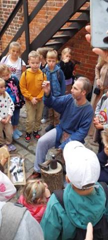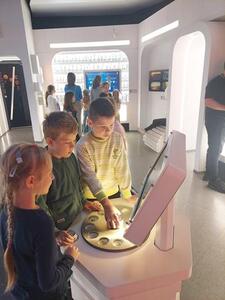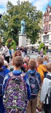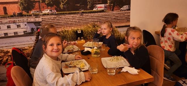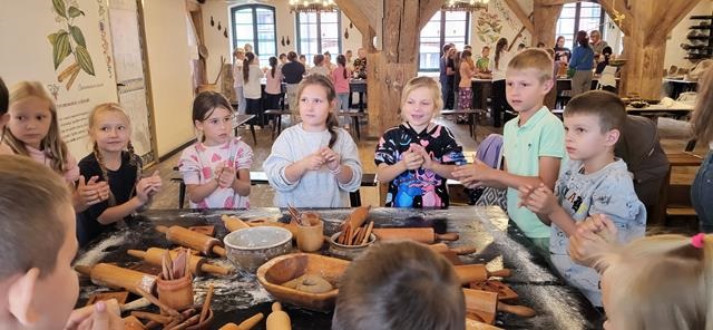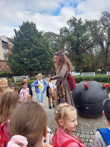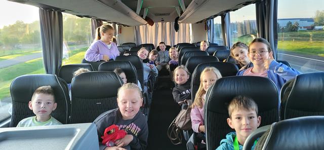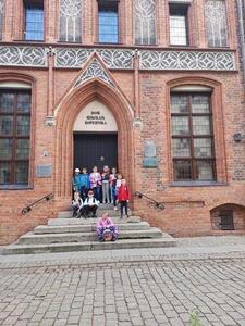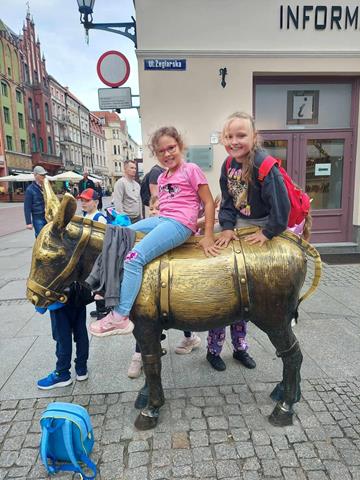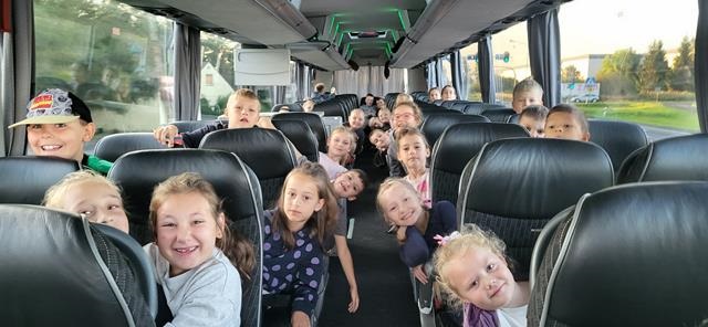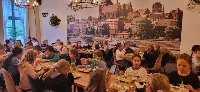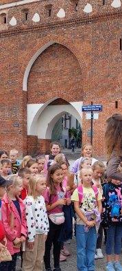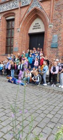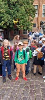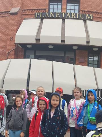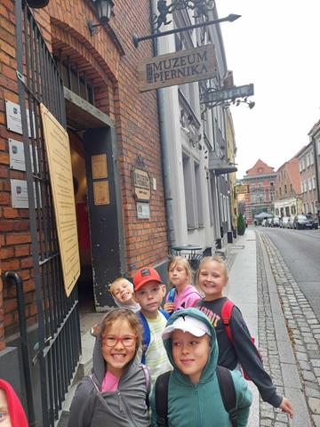 25 września 2024 roku uczniowie klas 1 – 5 wzięli udział w wycieczce do Torunia. Pierwszym punktem wycieczki byłą wizyta w Planetarium. Uczniowie wzięli udział w seansie pt. "Kolorowy kosmos". Podczas tego pokazu mogliśmy się dowiedzieć, czy niebo jest faktycznie czarno-białe, czy to tylko złudzenie. Okazuje się, że z bliska gwiazdy są żółtawe, czerwonawe i błękitne. A i nasze sąsiednie planety mają niezwykłe kolory! Mars nazywany jest Czerwoną Planetą, Neptun jest błękitny, a Jowisza ozdabiają wielobarwne chmury. Następnie udaliśmy się do Bazy MARS#17 interaktywnej przestrzeń zaaranżowanej w formie bazy kosmicznej, gdzie mogliśmy niczym członkowie załogi wykonywać określone czynności, niezbędne do tego, by przeżyć poza Ziemią i wykonać powierzone zadania. Misją jest nie tylko monitorowanie stanu Bazy, ale także usuwanie drobnych awarii, badanie próbek gruntu "Czerwonej Planety" czy właściwe gospodarowanie energią. Baza MARS#17 to nowoczesna i multimedialna przestrzeń, która nie tylko uczy, inspiruje, rozwija umiejętności i pobudza kreatywność, ale też zapewnia dobrą zabawę! Pełni wrażeń opuściliśmy Planetarium i udaliśmy się na obiad do restauracji „Rybakówka”. O godzinie 1300 zawitaliśmy do Żywego Muzeum Piernika. Poznaliśmy pod okiem Mistrza Piernikarskiego i uczonej Wiedźmy Korzennej - rytuały związane z wypiekiem piernika. Własnoręcznie przygotowaliśmy ciasto, by później, przy użyciu drewnianych form, wypiec z niego toruńskie specjały. Po warsztatach piernikarskich udaliśmy się na drugie piętro Muzeum, które prezentuje manufakturę z początku XX wieku, którą zarządzało rodzeństwo Rabiańskich. Zobaczyliśmy oryginalne niemieckie maszyny służące do wypieku piernika, zabytkowy piec oraz kolekcję woskowych form. Końcowym punktem naszej wycieczki było zwiedzanie toruńskiego rynku, po którym oprowadzała nas Pani Paulina. Pierwszym punktem zwiedzania była Krzywa Wieża. Poznaliśmy legendę związaną z tą „krzywą” budowlą i każdy z nas mógł poddać się „testowi prawości”. Według legendy równowagę, opierając się plecami o ścianę wieży, utrzyma tylko człowiek prawy, wierny i uczciwy. Następnie uliczkami miasta Pani przewodnik zaprowadziła nas do Domu Mikołaja Kopernika. Spacerowaliśmy po rynku Starego Miasta, a tam: oglądaliśmy zabytkowe kamieniczki, piernikową aleję gwiazd, osiołka, zwiedzaliśmy ratusz oraz zrobiliśmy sobie pamiątkową fotografię pod pomnikiem Mikołaja Kopernika. Na koniec wzięliśmy udział w grze miejskiej przygotowanej przez panią Paulinę.