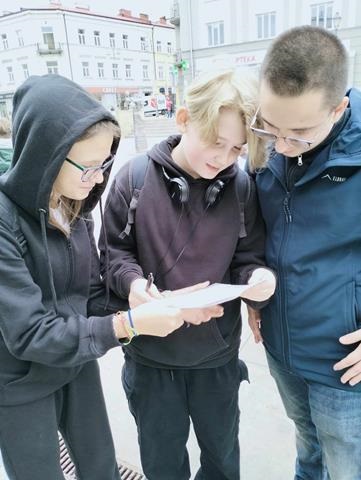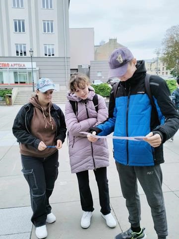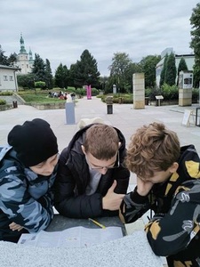 Pierwszego dnia po dotarciu do Kielc zostawiliśmy bagaże w schronisku i wyruszyliśmy poznawać miasto. Podzieleni na grupy trzyosobowe rozwiązywaliśmy zagadki z questu "Nie takie DZIKie Kielce". Pogoda nam nie sprzyjała, trochę padało. Za zaangażowanie wszyscy dostali słodkie nagrody.
