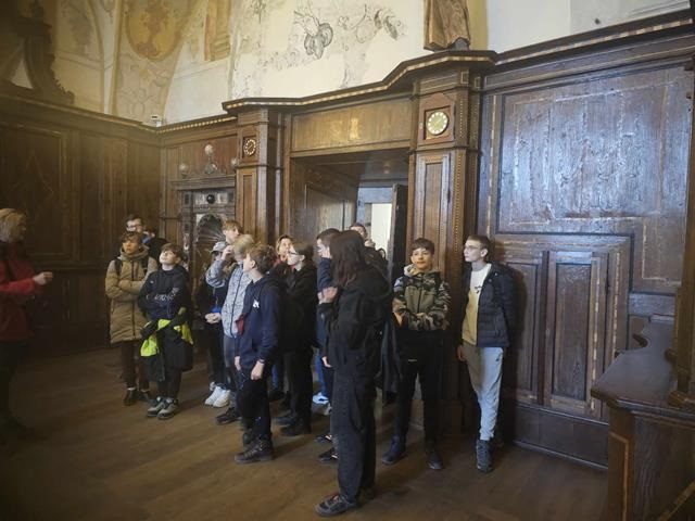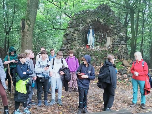 Po warsztatach ruszyliśmy z panią przewodnik Drogą Królewską na Święty Krzyż. Nazwa drogi pochodzi od licznych pielgrzymek królów polskich zmierzających tędy do relikwi Krzyża Świętego. Pokonując ten szlak, warto pamiętać,że szli tędy przed nami m.in. Władysław Jagiełło, Kazimierz Jagiellończyk, Jan Olbracht, Zygmunt Stary wraz z królową Boną, Zygmunt III, Władysław IV, Jan Kazimierz, Michał Korybut Wiśniowiecki i inni. Niektórzy z królów odbywali pielgrzymkę wielokrotnie, np. król Władysław Jagiełło 11 razy. Na końcu naszym oczom ukazał się klasztor. Poznaliśmy historię tego miejsca, przeszliśmy krużgankami, podziwialiśmy Kaplicę Oleśnickich z piękną renesansową kopułą i freskami. Ruszając w drogę powrotną, dotarliśmy na gołoborze na Łysicy. Legendy mówią, że w dawnych czasach na Łysą Górę zlatywały czarownice na sabat. Gdy zbudowano klasztor, diabłom przeszkadzały modlitwy mnichów. Pewnego dnia Lucyfer wysłał biesy ze stertą głazów, by zniszczyły klasztor. Jednak jeden z zakonników, bijąc w dzwony, wystraszył diabły, które upuściły kamienie na zbocze góry ...i tak powstało gołoborze.