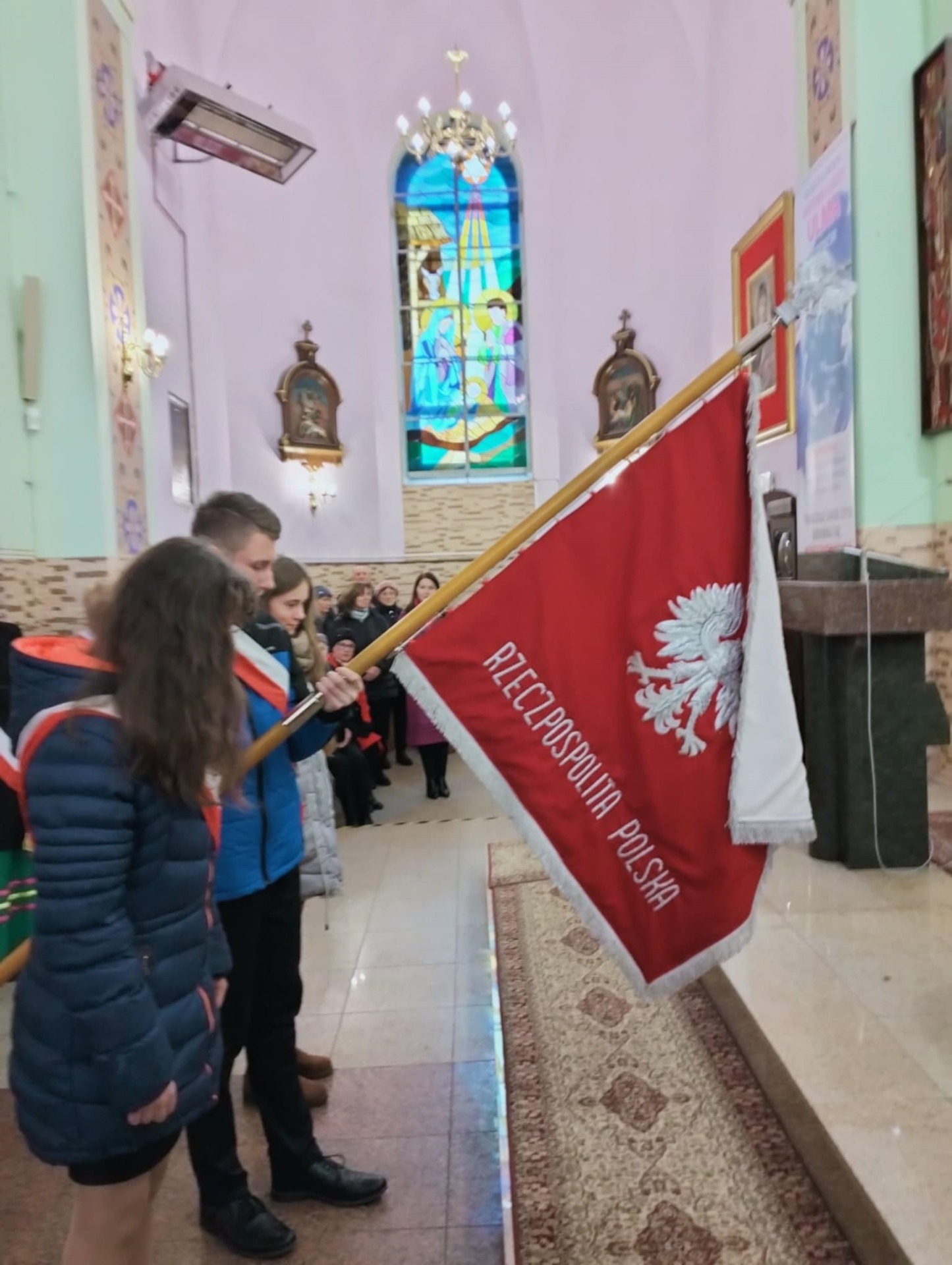 11 listopada 2024r. (poniedziałek) o godz.11.00 poczet sztandarowy naszej szkoły w składzie: Krystian Kłosiński, Martyna Kociołek, Maja Miarka (w zastępstwie byli obecni: Damian Grochala, Wiktoria Bojanowska, Anna Postawa) uczestniczył w uroczystej Mszy świętej za Ojczyznę w kościele pw. św. Witalisa w Tuszynie. W trakcie Mszy świętej zagrała Orkiestra Dęta z Tuszyna a po Mszy odbył się koncert pieśni patriotycznych w wykonaniu sopranistki Anny Cymmerman.