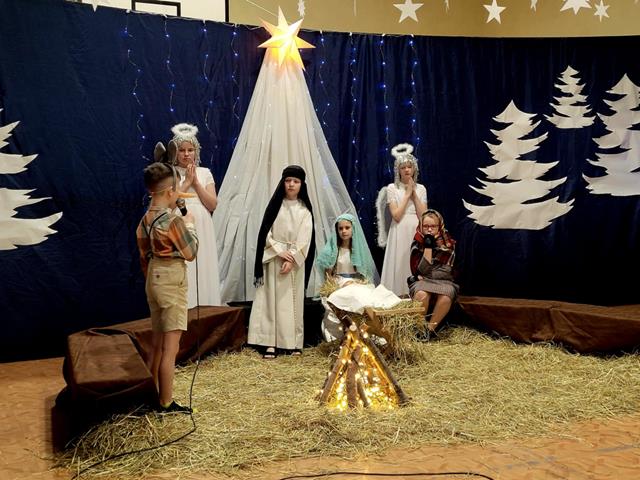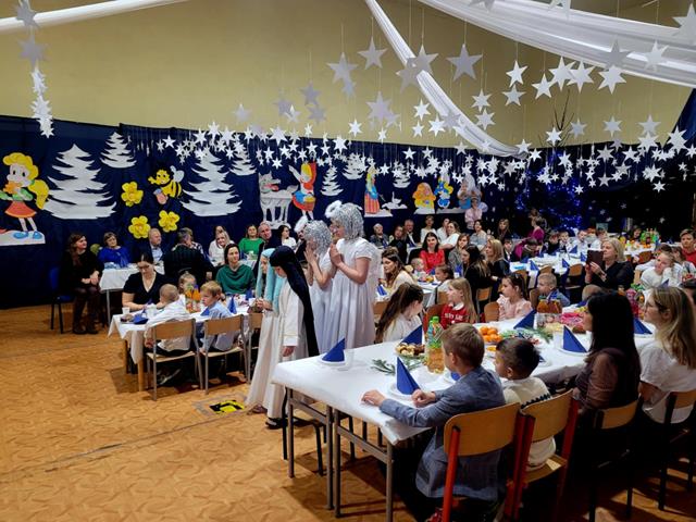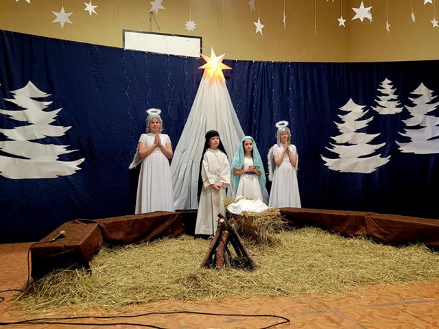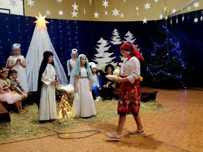 19 grudnia w Szkole Podstawowej im. Królowej Jadwigi w Wodzinie Prywatnym odbyło się wyjątkowe świąteczne przedstawienie. Tym razem nie były to typowe Jasełka, ale niemal profesjonalny spektakl teatralny pt. "Bajkowe jasełka". O godzinie 09.00 w pięknie udekorowanej na tę uroczystość sali gimnastycznej zebrali się zaproszeni goście: Wójt Gminy Tuszyn, przedstawiciele Rady Gminy Tuszyn, Rady Rodziców oraz Ośrodka Zdrowia, emerytowani nauczyciele, uczniowie, nauczyciele oraz pracownicy naszej szkoły. Przedstawienie było przeplatane utworami muzycznymi. Główny przekaz akademii, czyli altruistyczna pomoc innym, w pełni dotarł do oglądających, o czym świadczyło skupienie i cisza w czasie przedstawienia. Uczniowie mieli możliwość uświadomić sobie, że sens świąt nie polega jedynie na otrzymywaniu prezentów, lecz przede wszystkim na ich dawaniu, a sam prezent może mieć charakter niematerialny, na przykład zainteresowanie się samotną, potrzebującą osobą. Uroczystość wigilijna podczas, której wystawiliśmy nasze przedstawienie była niezapomnianym przeżyciem dla wszystkich uczestników. Dostarczyła wielu niezapomnianych wrażeń, chwil refleksji, zadumy...Potem były życzenia, łamanie opłatkiem, wspólne śpiewanie kolęd i poczęstunek, na wzór wieczerzy wigilijnej.