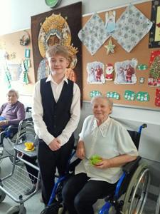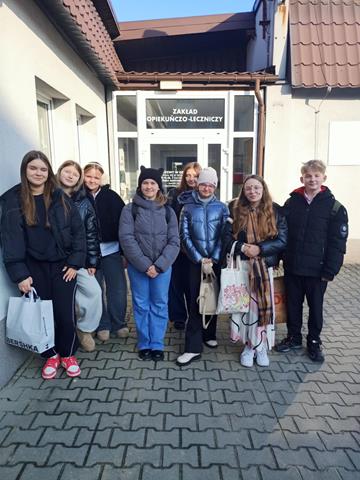W dniu 22 stycznia dziewięcioro uczniów naszej szkoły (5 dziewczynek z klasy szóstej, 3 dziewczynki z klasy siódmej i 1 chłopiec, również z klasy siódmej– Antoni Banaszczyk) po raz kolejny odwiedzili podopiecznych Zakładu Opiekuńczo-Leczniczego w Piotrkowie Trybunalskim. Wizyta była związana z obchodami Dnia Babci i Dziadka w ramach ogólnopolskiego projektu „Podaj dobro dalej”.