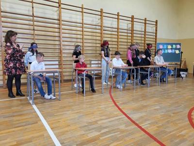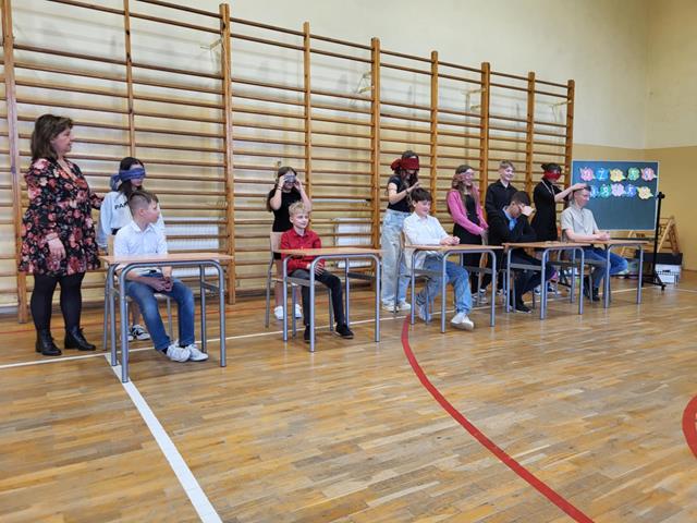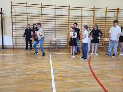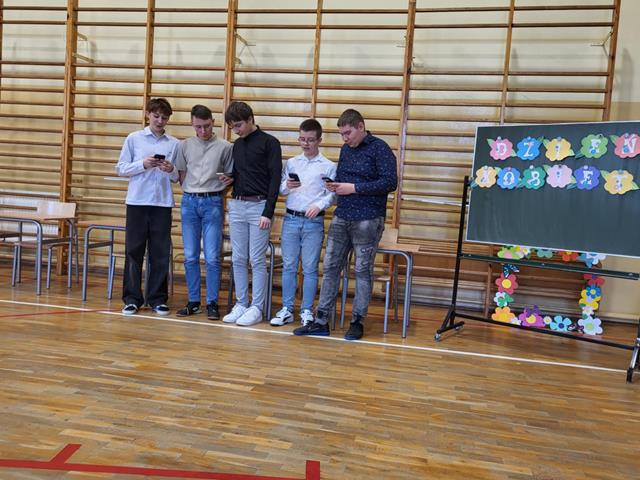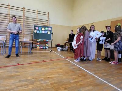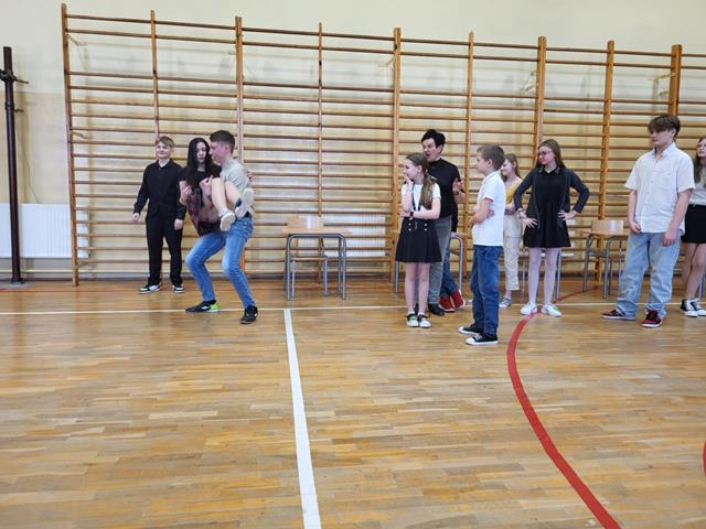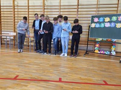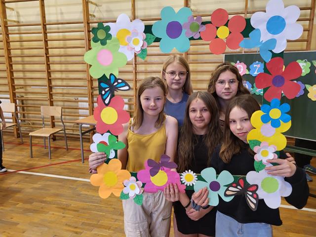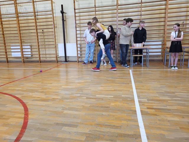 Ostatnim wyzwaniem, nie tylko dla chłopców ale przede wszystkim dla dziewczyn, okazało się zadanie polegające na przeniesieniu (w różnych wariantach, np; na barana czy na rękach) dziewczyny z klasy w slalomie między kwiatami. Tak chłopcy jak i dziewczęta podeszli do tej konkurekncji z przymróżeniem oka :). Śmiechu było całe mnóstwo😁.
