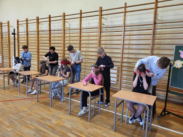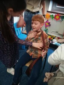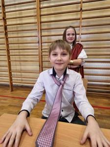 - wykazanie się umiejętnością zawiązania krawata na szyi chłopca z klasy.