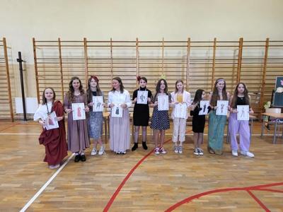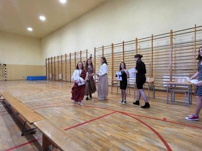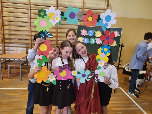 Na zakończenie obchodów szkolnego Dnia Kobiet chłopcy zaprezentowali ułożone wiersze i piosenki o swoich koleżankach z klasy a dziewczyny zaśpiewały przed wszystkimi piosenkę A. Rosiewicza pt. :"Najwięcej witaminy mają polskie dziewczyny".