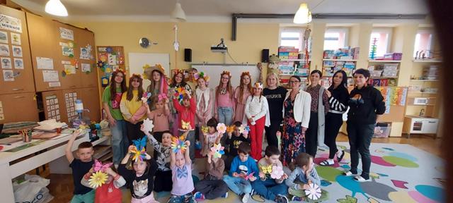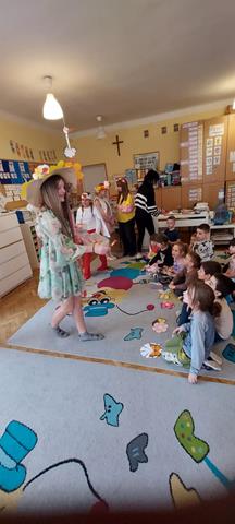 W dniu 1.04.2025r. uczennice klasy 6 i 5 pod opieką pani Małgorzaty Tomaszewskiej i Izabeli Zielińskiej wybrały się do Samorządowego Przedszkola z Oddziałami Integracyjnymi im. Misia Uszatka w Piotrkowie Trybunalskim. Było to kolejne spotkanie z dziećmi tej placówki w ramach projektu Podaj dobro dalej. Uczennice naszej szkoły zaprezentowały przedszkolakom występ pod tytułem: " Wiosna, wiosenka ". Było mnóstwo śmiechu i radości, wspólne śpiewanie i zabawy ruchowe w wiosennym nastroju. Przy miłej zabawie czas szybko płynął,a pora rozstania nastała zbyt szybko. Wszyscy z pewnością będą długo pamiętać te miłe chwile.