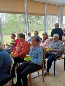 Po występie głos zabrała Pani Dyrektor, która w ciepłych słowach podziękowała za przygotowaną uroczystość i przekazała wszystkim najlepsze życzenia świąteczne. Młodzież obdarowała seniorów własnoręcznie wykonanymi świątecznymi ozdobami a uczniów czekoladowymi jajeczkami.