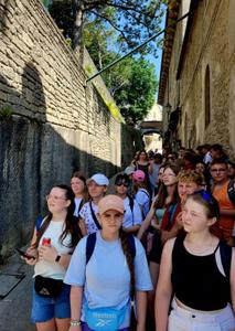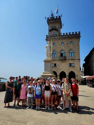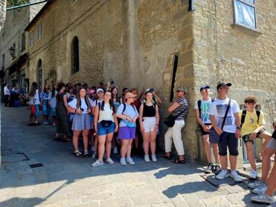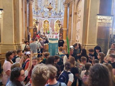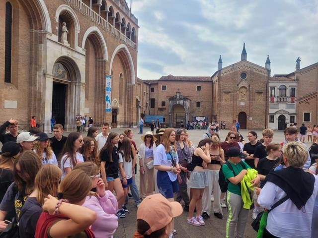 Włoska przygoda – niezapomniany wyjazd uczniów naszej szkoły W dniach 8–14 czerwca uczniowie naszej szkoły wzięli udział w wyjątkowym wyjeździe do Włoch, który obfitował w niezapomniane atrakcje, piękne widoki i mnóstwo wrażeń. Nasza przygoda rozpoczęła się wieczorem 8 czerwca, kiedy wyruszyliśmy spod szkoły w kierunku słonecznej Italii. Po całonocnej podróży, 9 czerwca dotarliśmy do Padwy, gdzie zwiedziliśmy to urokliwe miasto pełne historii i zabytków. Po południu dotarliśmy do Rimini, gdzie czekało na nas zakwaterowanie i obiadokolacja. Wieczorem wybraliśmy się na spacer nad morze oraz po samym Rimini – to był idealny sposób na powitanie z Adriatykiem. 10 czerwca spędziliśmy na plażowaniu i relaksie, ciesząc się włoskim słońcem i ciepłą wodą. Dzień później, 11 czerwca, udaliśmy się do Mirabilandii – jednego z największych parków rozrywki we Włoszech. Cały dzień spędziliśmy, korzystając z licznych atrakcji, karuzel i kolejek, co dostarczyło nam mnóstwo radości i emocji. 12 czerwca przed południem ponownie korzystaliśmy z uroków plaży, a po obiedzie wybraliśmy się na wycieczkę do San Marino – jednego z najmniejszych i najstarszych państw na świecie. Malownicze uliczki, wspaniałe widoki i zabytki zrobiły na nas ogromne wrażenie. 13 czerwca po wykwaterowaniu z hotelu udaliśmy się na rejs statkiem do Wenecji. Podziwialiśmy uroki tego niezwykłego miasta na wodzie, spacerując po Placu św. Marka, mostach i wąskich uliczkach. Po zakończonym zwiedzaniu powróciliśmy na stały ląd i wyruszyliśmy w drogę powrotną do Polski. 14 czerwca w godzinach porannych szczęśliwie dotarliśmy pod szkołę – zmęczeni, ale pełni wrażeń i wspomnień, które na długo pozostaną w naszej pamięci. Wyjazd był nie tylko okazją do wypoczynku i zabawy, ale także do poznawania włoskiej kultury, historii i języka. Serdecznie dziękujemy organizatorom, opiekunom i przewodniczce za profesjonalne przygotowanie i opiekę podczas całej wycieczki.