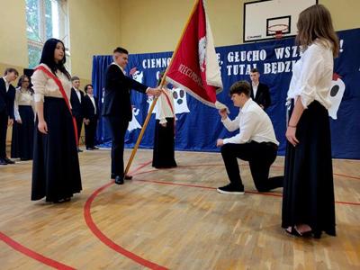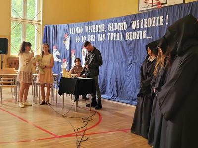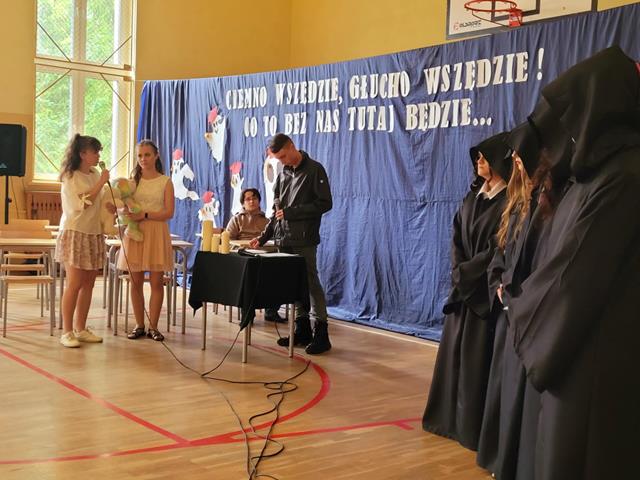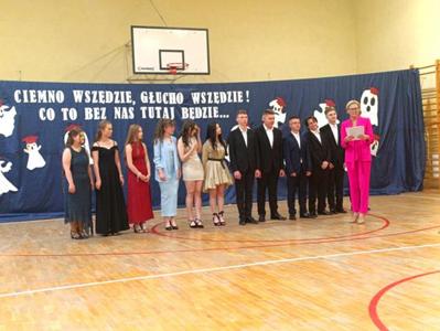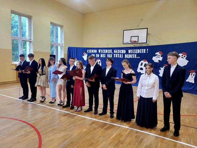 W środę, 25 czerwca, pożegnaliśmy najstarszą klasę w naszej szkole. Uroczystość rozpoczęliśmy od poloneza w wykonaniu klas VIII i VII, przekazania Sztandaru i Kroniki Szkoły młodszym Kolegom i Koleżankom oraz ślubowania przyszłych Absolwentów, którzy przysięgli wiernie strzec honoru szkoły i, swoją dalszą nauką i pracą, rozsławiać jej dobre imię.