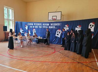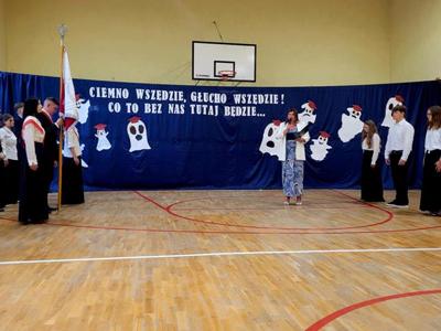 Uczniowie zaprezentowali przedstawienie pt. "Szkolne dziady", dzięki któremu z przymrużeniem oka wspomnieli wszystkie lata szkoły podstawowej. Bardzo wzruszającym momentem były podziękowania - dla Wychowawczyni, Dyrekcji Szkoły oraz wszystkich Nauczycieli i Pracowników, a także pożegnanie Absolwentów przez klasę VII. Niektórym łezka się w oku zakręciła...