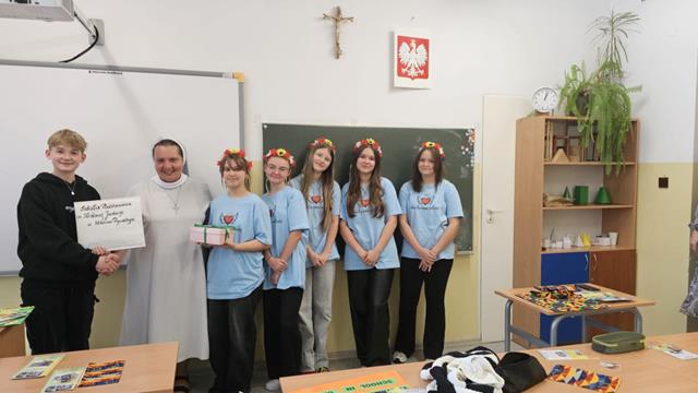W roku szkolnym 2024/2025 Koło Wolontariusza ISKIERKA realizowało Ogólnopolski Projekt „Podaj dobro dalej” pod hasłem „Pomaganie nie ma granic”, który połączony był z międzynarodowym projektem „Szkoła Szkole”.