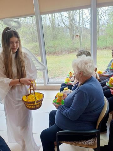 „Zbawienie przyszło przez krzyż” to tytuł montażu słowno - muzycznego, który wolontariusze przygotowali z okazji świąt Wielkanocnych pensjonariuszom Dziennego Domu Seniora WIGOR w Tuszynie. Pensjonariuszom wolontariusze podarowali też własnoręcznie wykonane upominki świąteczne.