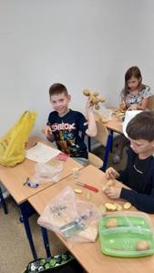 Dzień ziemniaka w klasach 1-3 był dniem w którym uczniowie poznali i przypomnieli sobie historię ziemniaka, przyswoili także wiele ciekawostek i informacji związanych z ziemniakami. Rozmawiali o znaczeniu ziemniaka w kuchni podając przykłady potraw, w których króluje ziemniak. Odbył się konkurs na " Ziemniaczanego Ludka" oraz konkurencje sportowe tj.: zbieranie ziemniaków, "Gorący ziemniak", ziemniaczana sztafeta itd. Ważnym elementem tego dnia była degustacja ziemniaków prosto z ogniska, które przygotował Pan Robert Pierzchała. Ten wspaniały dzień zakończył się dla uczniów niespodzianką. Była to zabawa na dmuchańcu. Uczniowie mogli z niego skorzystać dzięki Państwu: Ewie Koteckiej i Michałowi Bojdo.