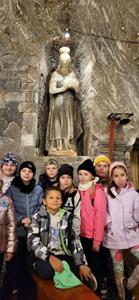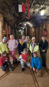 9 października uczniowie klas I-VI zwiedzili zabytkową Kopalnię Soli w Bochni podróżując przez najstarsze i najpiękniejsze wyrobiska tej kopalni. Zwiedzanie kopalni rozpoczęli od zjazdu pod ziemię ciemnym, wilgotnym szybem „Campi”. Zjazd windą na głębokość 212 m zrobił na dzieciach duże wrażenie. Tuż po zjeździe pod ziemię, na uczestników wycieczki czekała kolejka, która przemierzyła kilometrową trasę pomiędzy szybem „Campi” i „Sutoris”. Kolejka jechała dość szybko, ale po drodze mogliśmy zobaczyć wiele zabytków, postaci i ciekawych, zagadkowych miejsc. Za pomocą holograficznych i interaktywnych inscenizacji oraz słuchowisk przekazana została nam wiedza o historii kopalni, średniowiecznych technikach wydobywczych, pracy górnika, zwyczajach górniczych oraz codziennym życiu kopalni. W pamięci na pewno pozostaną prezentacje pokazujące dawny system wentylacji, pracę wypalaczy metanu, pożary oraz zalanie wodą podziemnych chodników. Odwiedziliśmy także Stajnię Mysiur, w której do lat 60 XX w. przebywały wykorzystywane do pracy w kopalni konie. Cały czas towarzyszył nam stuk młotków i dźwięk sypiącej się soli. Jedną z wielu atrakcji było zwiedzanie kaplicy św. Kingi (jedynej, pośrodku której przechodzą tory i przejeżdża kolejka) z umieszczoną tam piękną szopką bożonarodzeniową. Trasę wycieczkową zakończyliśmy wspólnym spędzeniem czasu, zabawami, grą w piłkę nożną i koszykową oraz w tenisa stołowego, przy gorącej czekoladzie i frytkach, w największej z podziemnych komór, komorze Ważyn ok. 250 metrów pod powierzchnią ziemi. Poznawanie „podziemnego, solnego miasta” było niezwykłą przygodą oraz interesującą lekcją historii i przyrody. Dzięki tej wycieczce doceniliśmy ciężką i bardzo niebezpieczną pracę górników. Zadowoleni i pełni wrażeń wrócili do szkoły.