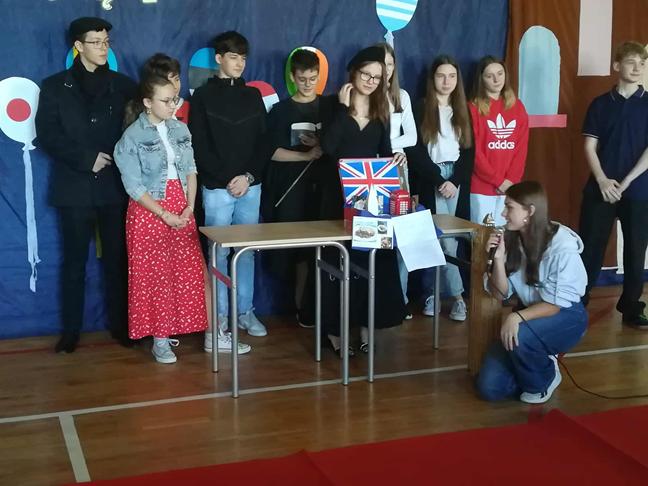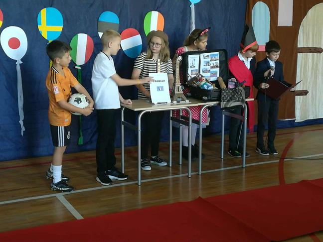31.10.2025 r. w naszej szkole odbył się Dzień Języków Obcych. Uczniowie klas 2–3 zaprezentowali bajkę pt. "Snow White" w języku angielskim, pokazując, że nauka języków obcych może być świetną zabawą już od najmłodszych lat. Starsze klasy również przygotowały niezwykle ciekawe występy. Uczniowie klas 4–8 przedstawili scenki w językach angielskim i niemieckim, prezentując swoje umiejętności językowe oraz talent aktorski. Dodatkowo, klasy 6 i 7 zaśpiewały piosenki, które zostały bardzo ciepło przyjęte przez publiczność. W programie obchodów znalazło się także coś dla miłośników rywalizacji – uczniowie wzięli udział w quizie Kahoot, sprawdzającym wiedzę ogólną o różnych krajach. Nie zabrakło również elementów kreatywnych. Starsi uczniowie przygotowali „walizki” prezentujące wylosowane wcześniej kraje, w których znalazły się symbole, ciekawostki i pamiątki charakterystyczne dla danego państwa. Całość dopełnił barwny i pełen emocji pokaz mody na czerwonym dywanie, podczas którego uczniowie zaprezentowali stroje inspirowane różnymi krajami. Uroczystość przebiegała w radosnej atmosferze i była świetną okazją do wspólnej nauki oraz poznawania kultur innych państw.